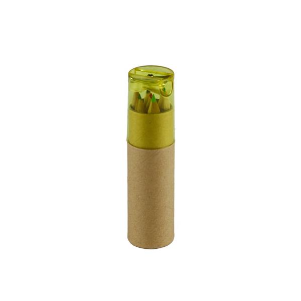 Zestaw 6 kredek w okrągłym pudełku zamykanym kolorową zatyczką z wbudowaną temperówką, produkt wykonany z kartonu z recyklingu Strona w katalogu: 343 Materiał produktu: karton Wymiary produktu: Ø2,7 x 10,2 cm Kraj pochodzenia: CN Waga produktu: 25 g Ilość szt. w kartonie wewnętrznym: 50 Ilość szt. w kartonie zewnętrznym: 400 Wymiary kartonu zewnętrznego: 57 x […]