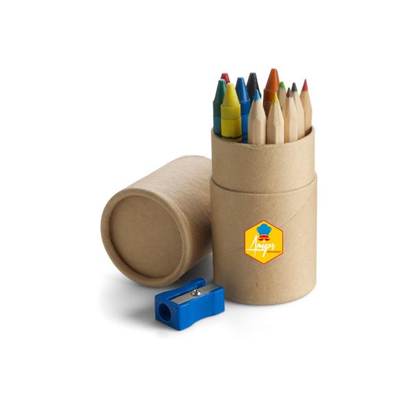 Mini zestaw w tubie: 6 kredek, 6 kredek świecowych oraz temperówka