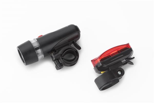 AZER to zestaw lampek rowerowych o ekonomicznym źródle światła LED. Mocne światło przednie i zapewniające widoczność z kilkuset metrów światło tylne sprawią, że bez obaw będziesz jeździć o każdej porze dnia i nocy. Charakteryzują się bardzo łatwym montażem. Lampka przednia posiada 5 białych diod LED i 3 tryby świecenia: jeden ciągły i dwa migające. Natomiast lampka tylna posiada 5 czerwonych diod LED i 7 trybów świecenia: jeden ciągły i 6 migających.