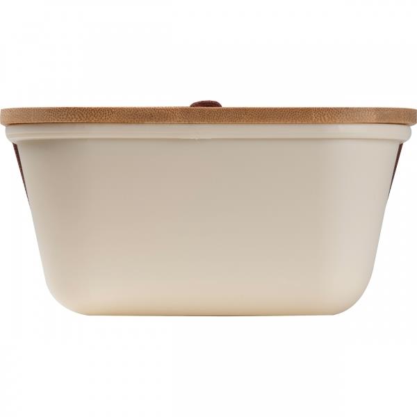 Zestaw składający się z praktycznego pojemnika na lunch o pojemności 1000 ml, wykonanego z materiału PP, z bambusowym wieczkiem i gumką, która utrzymuje je na miejscu oraz butelki termicznej. L3 (grawer laserowy): 6 x 4 cm