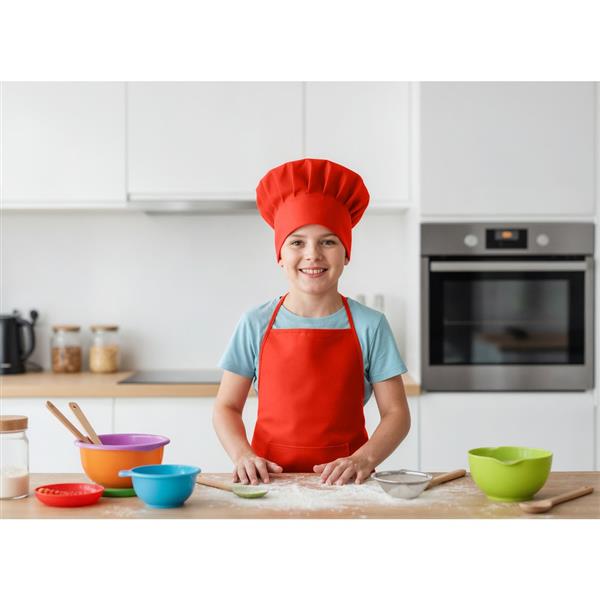 Zestaw małego kucharza, fartuch kuchenny i czapka kucharska w komplecie, zestaw w rozmiarze dziecięcym, produkt wykonany z non-woven 80 g/m2