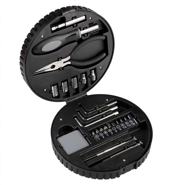 Zestaw narzędzi 25 el., w opakowaniu w kształcie opony