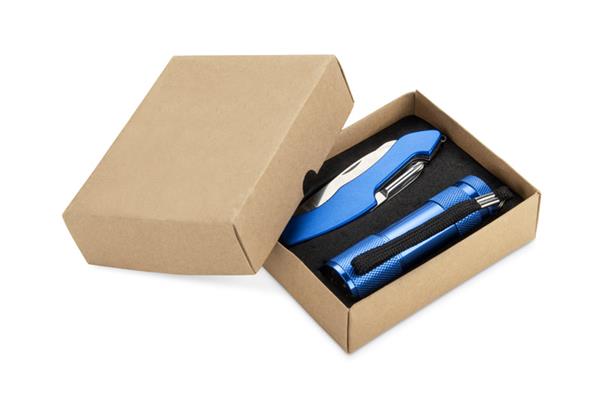 Zestaw narzędzi REPARO to praktyczny komplet składający się z latarki LED oraz wielofunkcyjnego multitoola. W kompaktowej formie multitool oferuje szeroki zestaw narzędzi: śrubokręt krzyżakowy, śrubokręt płaski, pilnik do drewna i metalu, otwieracz do puszek i butelek, korkociąg, piłę dwurzędową, klasyczną piłę, nóż oraz nożyczki. Dzięki temu sprawdzi się zarówno w domu, jak i w podróży czy podczas prac w terenie. Latarka LED stanowi przydatne uzupełnienie zestawu, zapewniając dodatkowe źródło światła. Całość zapakowana w pudełko, co czyni REPARO także atrakcyjnym upominkiem reklamowym z możliwością znakowania.