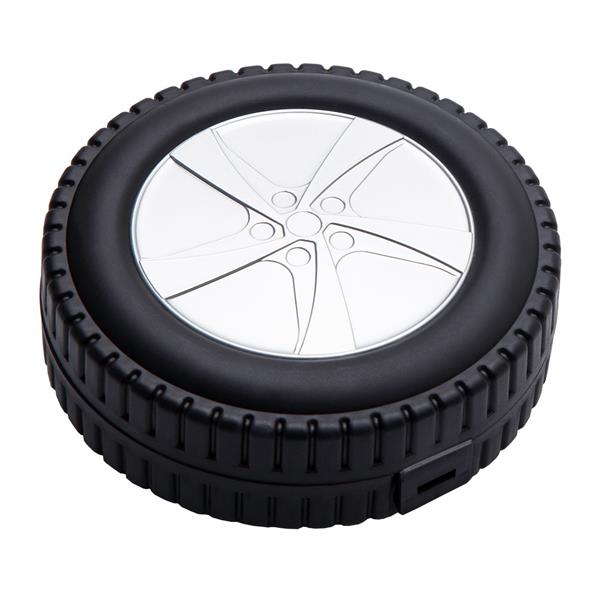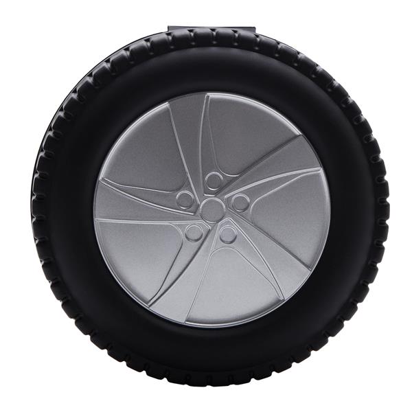 Zestaw 24 narzędzi w opakowaniu w kształcie opony samochodowej, w skład którego wchodzą: wkrętak precyzyjny PH (krzyżowy), wkrętak precyzyjny (płaski), miara zwijana 1 m, adapter (1/4”), klucz Torx – 3 rozmiary, wkrętak płaski – 2 rozmiary, wkrętak Phillips (krzyżowy) – 4 rozmiary, klucz imbusowy – 3 rozmiary, klucz nasadowy/oczkowy – 5 rozmiarów (5-9), szczypce uniwersalne, uchwyt wkrętakowy uniwersalny, magnetyczny (1/4”), przedłużka 35 mm (1/4”).