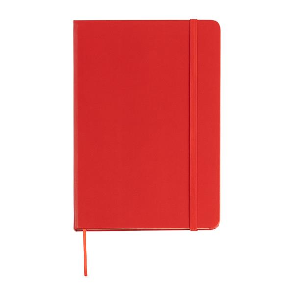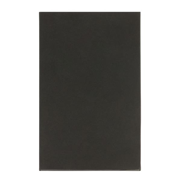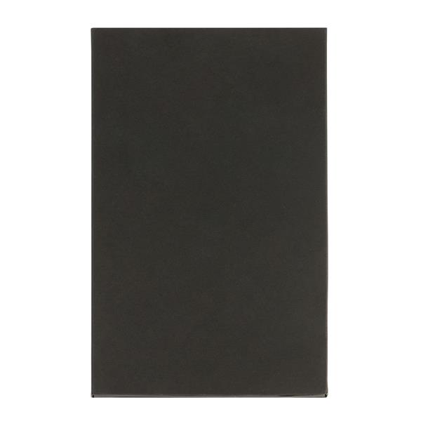 Zestaw składający się z notesu i długopisu. Notes w twardej oprawie, 72 kartkowy w kratkę (papier 70 g/m2) z tasiemką do zaznaczania zapisanej ostatniej strony i elastyczną gumką chroniącą wnętrze. Długopis aluminiowy z rysikiem do obsługi ekranów dotykowych, wyposażony w niebieski wkład. Zestaw pakowany w czarne upominkowe pudełko.