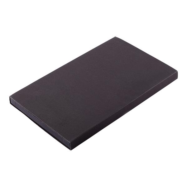 Zestaw składający się z notesu i długopisu. Notes w twardej oprawie, 72 kartkowy w kratkę (papier 70 g/m2) z tasiemką do zaznaczania zapisanej ostatniej strony i elastyczną gumką chroniącą wnętrze. Długopis aluminiowy z rysikiem do obsługi ekranów dotykowych, wyposażony w niebieski wkład. Zestaw pakowany w czarne upominkowe pudełko.