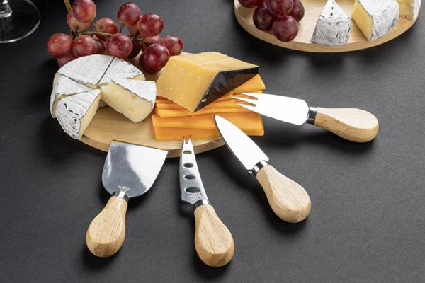 Zestaw 4 noży do sera zapakowany w klasyczne, porządnie wykonane papierowe pudełko. Wewnątrz opakowania umieszczona jest infografika wraz ze zdjęciem i opisem do czego dany nóż jest przeznaczony. Ten zestaw to doskonały pomysł na prezent. Noże wykonane ze stali nierdzewnej.