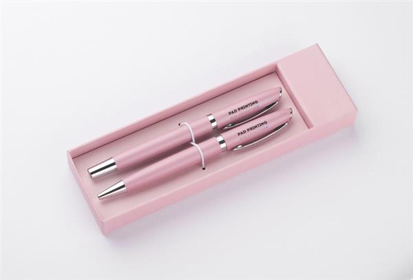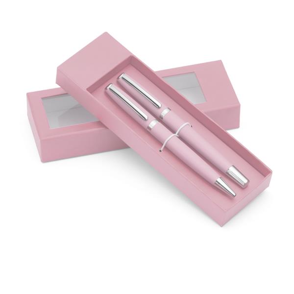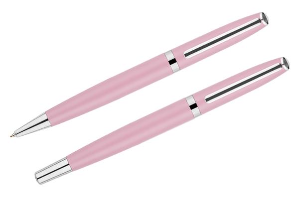 Zestaw piśmienniczy COLORADO składa się z długopisu oraz pióra kulkowego zapakowanych w kartonik dopasowany kolorystycznie do zestawu. Przybory piśmiennicze wykonane z metalu, etui z mocnej tektury wykończonej kolorowym papierem. Jego cechą charakterystyczną są soczyste, modne kolory. Długopis z mechanizmem typu twist. Wkład pióra i długopisu w kolorze niebieskim.