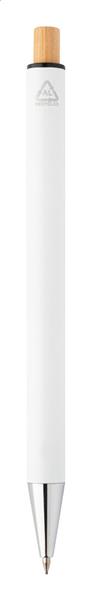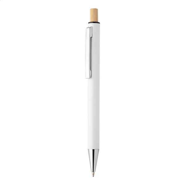Zestaw z aluminium pochodzącego z recyklingu, składający się z długopisu i ołówka automatycznego z bambusowymi przyciskami. Z niebieskim wkładem i rysikiem 0,7 mm. W pudełku z papieru kraft.
