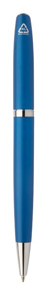 Zestaw piśmienniczy z aluminium z recyklingu w zestawie pióro kulkowe i długopis w pudełku upominkowym z czarnego papieru. Niebieski wkład.