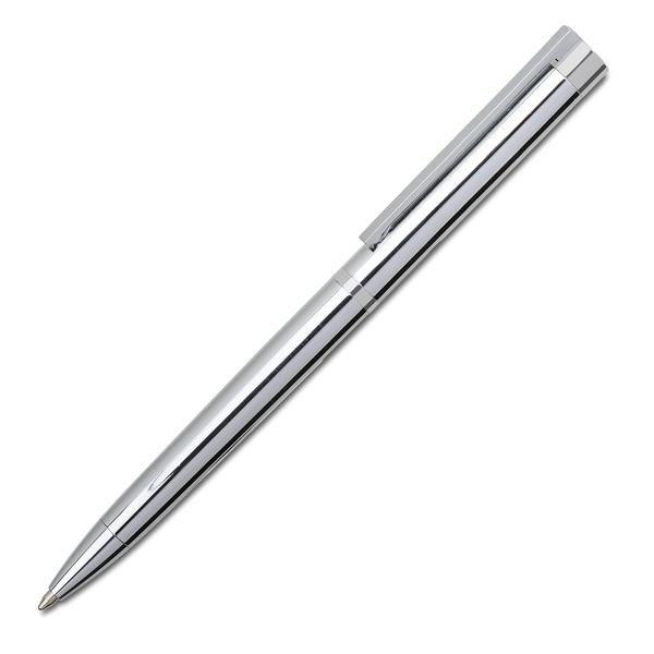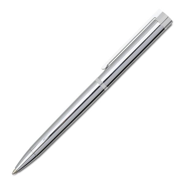 Zestaw składający się z klasycznego metalowego długopisu i pióra kulkowego. Pakowany w upominkowe etui. Wkłady w kolorze niebieskim. Obrotowy mechanizm włączania.
