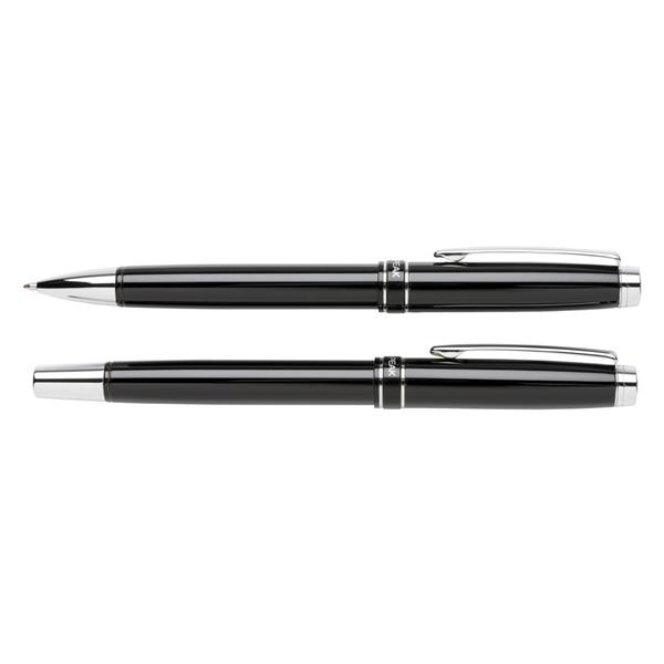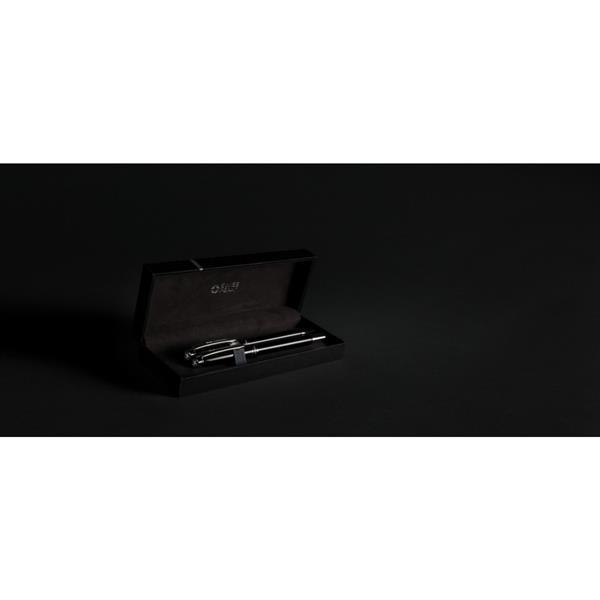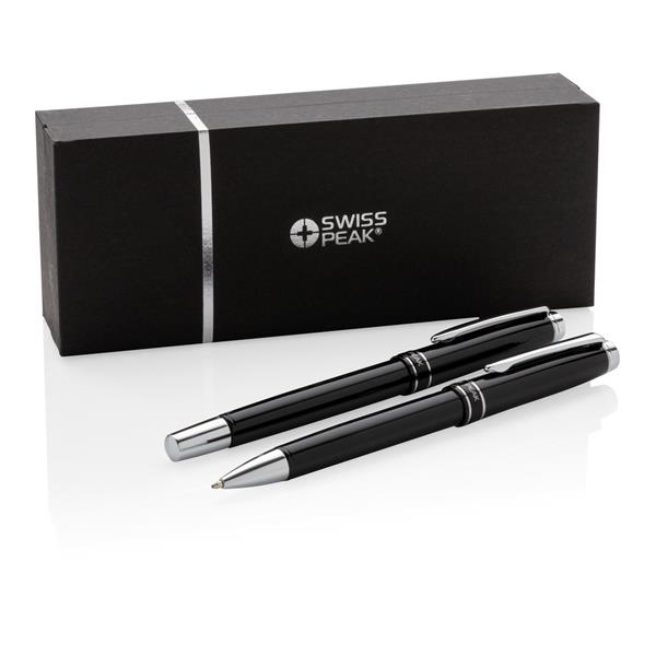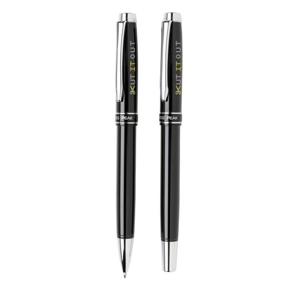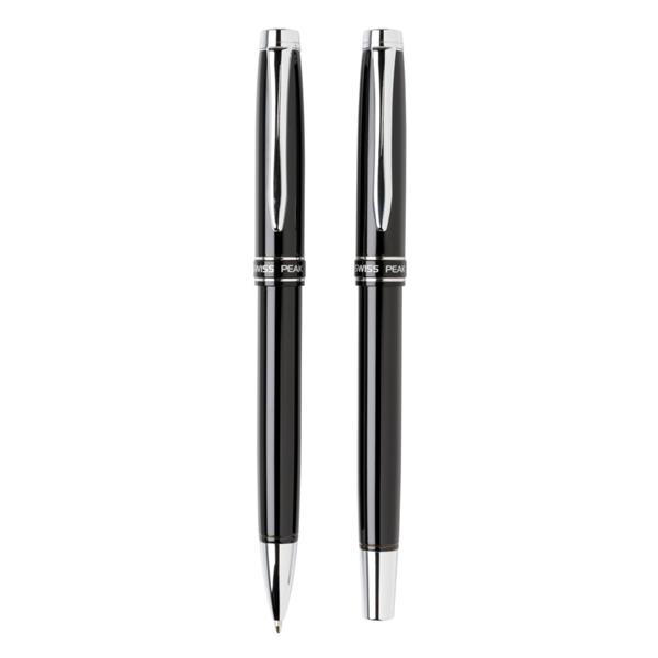 Ekskluzywny zestaw piśmienniczy, pióro kulkowe i długopis wykonane z mosiądzu, niemiecki wkład, długość pisania ok. 1200 m, w ozdobnym pudełku Swiss Peak, grawer ukazuje powierzchnię w kolorze złotym, ślad węglowy produktu: 1,15 kg CO2