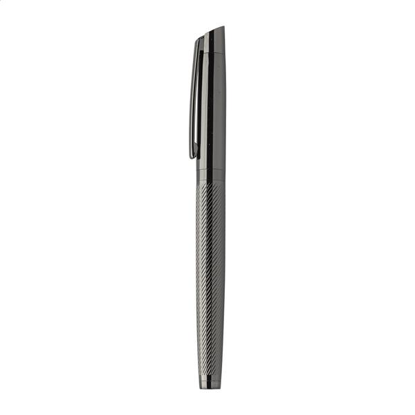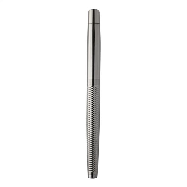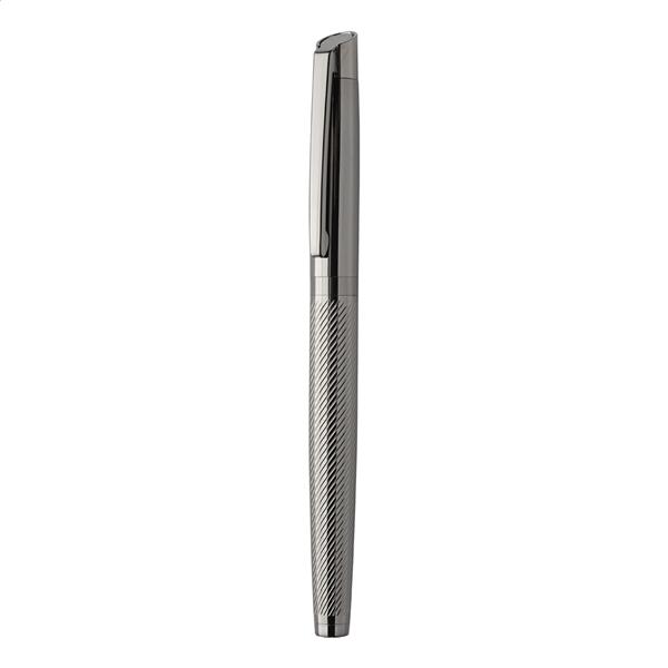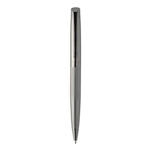 Elegancki, metalowy zestaw składający się z długopisu i pióra kulkowego z teksturowanym korpusem. W dwukolorowym pudełku prezentowym, z niebieskim wkładem. Produkt marki André Philippe.