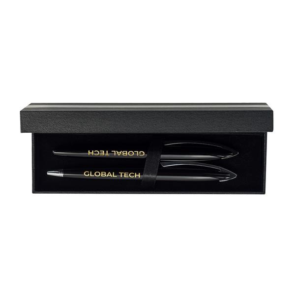 Elegancki zestaw składający się z metalowego długopisu i pióra kulkowego. Wkłady w kolorze niebieskim. Obrotowy mechanizm włączania. Wymiary: 180.0×55.0×30.0 Meteriał wykonania: stal nierdzewna Kolor podstawowy: czarny Meteriał dodatkowy: miedź, tektura, welur Opcje zdobienia: Id: 23212 Technic id: 8 Technic category: A3 Technic name: Tampodruk Technika zdobienia: Tampodruk A3 Miejsce zdobienia: opakowanie Termin realizacji: 3 Ilosc […]