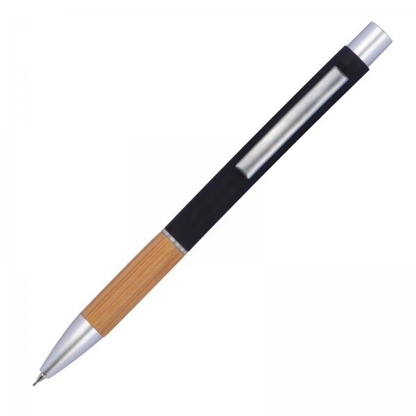 Zestaw piśmienniczy, składający się z piszącego na niebiesko długopisu oraz ołówka.