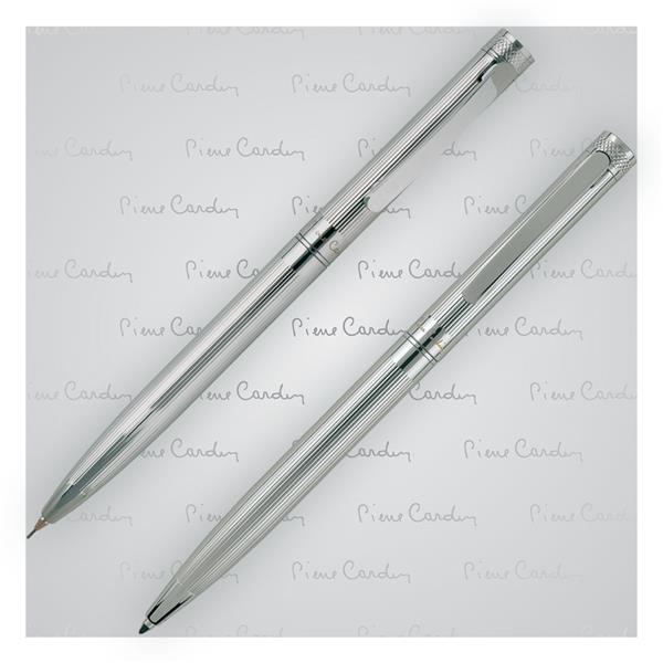 Najwyższej jakości zestaw piśmienny składający się z długopisu piszącego na niebiesko (1 mm) i ołówka (grafit 0,5 mm) pochodzących z kolekcji RENEE. Przybory piśmienne wykonane z metalu z chromowanymi elementami. Zestaw zapakowany w eleganckie pudełko prezentowe z certyfikatem autentyczności Pierre Cardin.