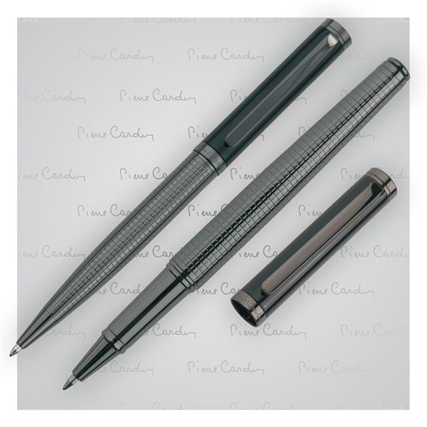 Szykowny, dwukolorowy zestaw piśmienny składający sie z długopisu i pióra kulkowego. Długopis wyposażony w wysokiej jakości niebieski wkład z końcówką 1 mm, a pióro w niemiecki wkład Schmidt® piszący na niebiesko z końcówką 0,6 mm. Obydwa artykuły w zestawie z czarnymi wkładami zapasowymi. Całość zapakowana w eleganckie pudełko prezentowe z certyfikatem autentyczności Pierre Cardin.