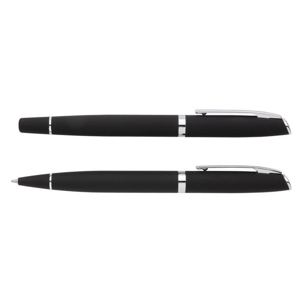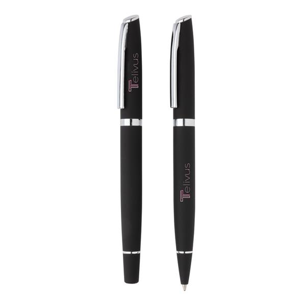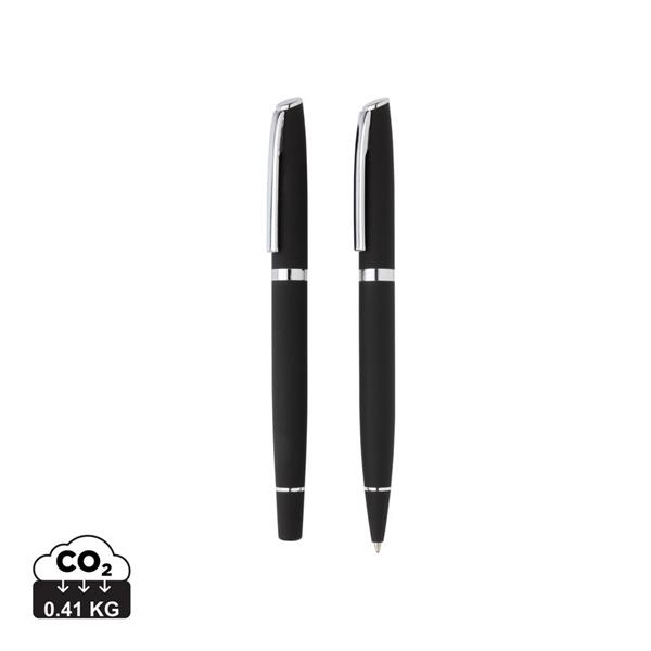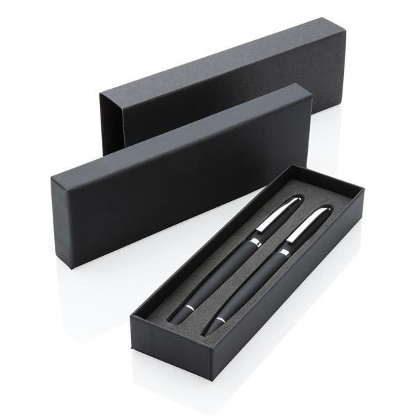 Ekskluzywny zestaw piśmienny, pióro kulkowe oraz długopis, matowe wykończenie, niemiecki wkład Dokumental® w kolorze niebieskim w komplecie, długość pisania długopisu ok. 1200 m, pióro kulkowe ok 400 m, w dopasowanym kolorystycznie pudełku ozdobnym, ślad węglowy produktu: 0,41 kg CO2