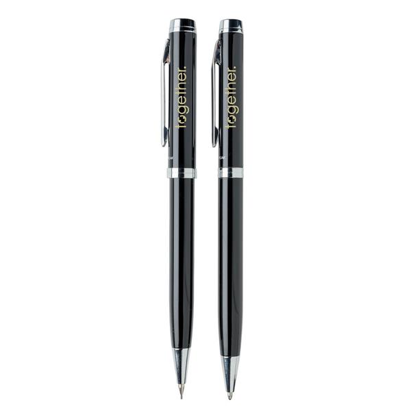 Zestaw piśmienny, długopis i ołówek mechaniczny 0.7 mm wysokiej jakości, niemiecki wkład, długość pisania ok. 1200 m, 3 wkłady do ołówka i ozdobne pudełko Swiss Peak w komplecie, ślad węglowy produktu: 0,21 kg CO2