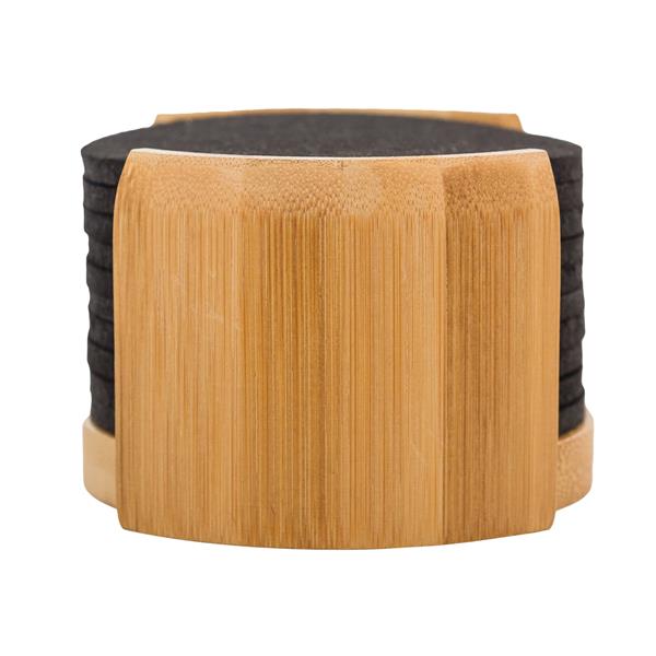 Zestaw 10 podkładek wykonanych z filcu RPET w bambusowym uchwycie.