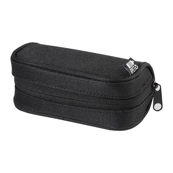 3-częściowy zestaw podróżny w zamykanym na suwak etui z RPET. W zestawie poliestrowy pas bagażowy z 3-cyfrowym zamkiem, etykieta bagażowa z PP i metalowa 3-cyfrowa kłódka do walizki. Poliester 600D RPET, z charakterystyczną metką RPET.