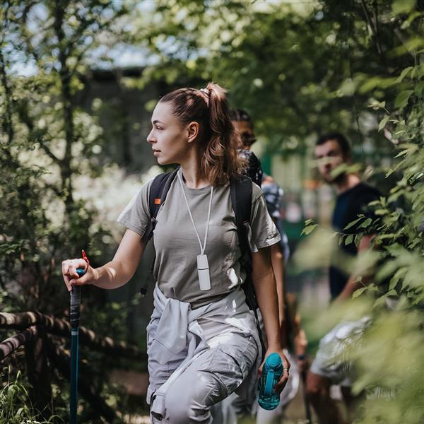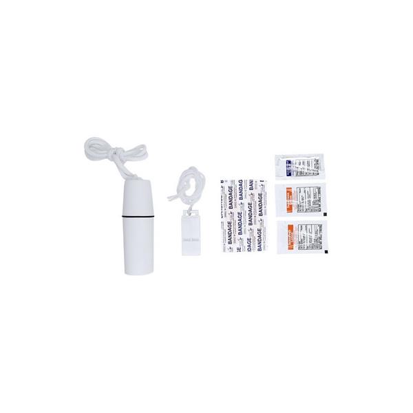 Zestaw podróżny 6 el., żel wodno-alkoholowy, filtr przeciwsłoneczny SPF30, bandaż, gwizdek, regulowana biała smycz, etui, produkt wykonany z ABS