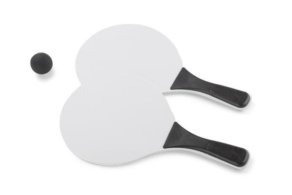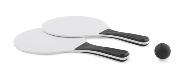 Zestaw rakietek plażowych TINES to propozycja świetnej zabawy na świeżym powietrzu. Zapakowany w woreczek ułatwiający zabranie rakietek ze sobą w dowolne miejsce. Do zestawu dołączona jest piłeczka.
