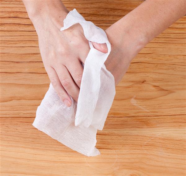 Kompaktowy zestaw ściereczek do rąk w pojemniku, 10 szt., rozłożona ściereczka ma wymiar 23 x 23 cm