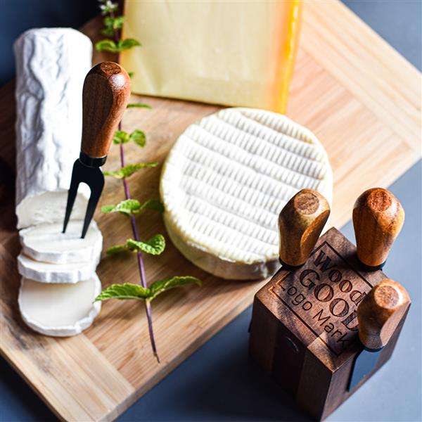 Zestaw do sera wykonany z wysokiej jakości stali nierdzewnej i drewna akacjowego. Składa się z: noża do parmezanu, noża do krojenia serów miękkich, noża do serów twardych oraz widelca serowego umieszczonych na drewnianym bloku.
