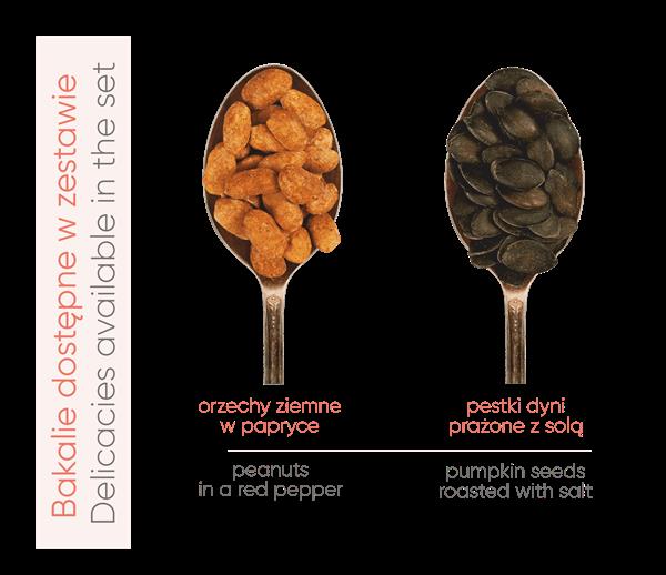Zgrany duet orzeszków w papryce oraz pestek dyni – wybierz przekąskę, która doda wyrazistości Twojej marce. Polecamy wytrawne bakalie jako alternatywę dla czekoladek i cukierków reklamowych. Obdaruj chrupiącą przekąską klientów, kontrahentów lub pracowników i pokaż, że Twoja marka wyznacza trendy!