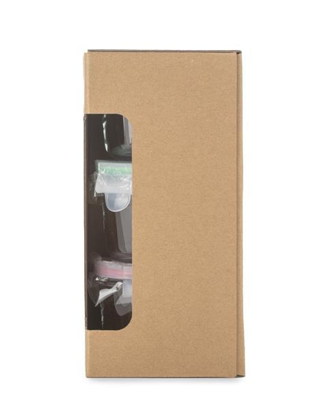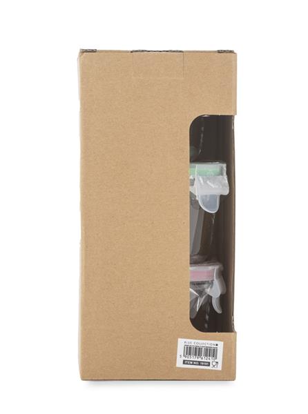 Zestaw PESTO zawiera 3 słoiczki ze szkła borokrzemowego z transparentną przykrywką zamykaną na 3 zaczepy. Każda przykrywka posiada uszczelkę w innym kolorze. Można ich używać do przechowywania żywności oraz podgrzewania potraw w wysokiej temperaturze. Pojemność jednego słoiczka wynosi 120 ml.