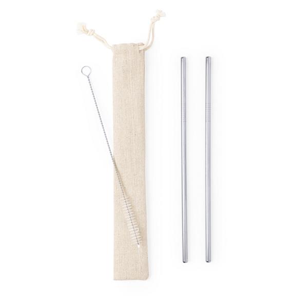 Zestaw 2 słomek wielokrotnego użytku ze stali nierdzewnej, czyścik i bawełniany woreczek w komplecie