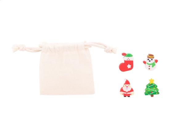 Zestaw 4 gumek do ścierania ze świątecznym wzorem, w bawełnianym etui.