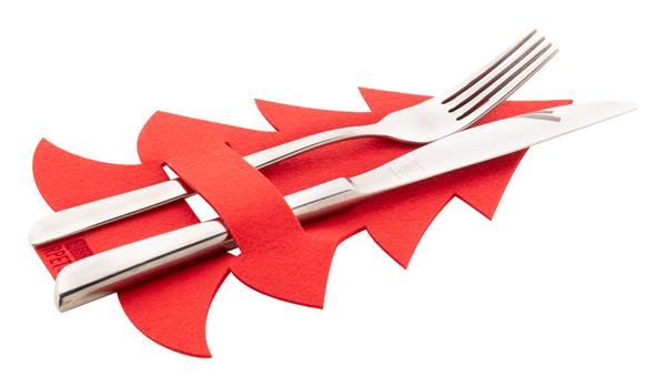 Zestaw 4 szt. filcowych RPET uchwytów na sztućce w kształcie choinki. W pudełku z papieru kraft.