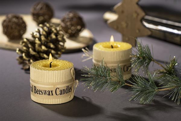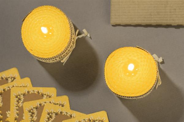 Zestaw 2 świec wykonanych z naturalnego wosku pszczelego to idealny upominek dla osób ceniących romantyczny nastrój w wersji eko. Świece spakowane w kartonik z tektury wypełniony ozdobnym siankiem ekologicznym. Każda świeca ozdobina kokardą z rafii.