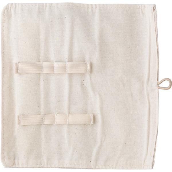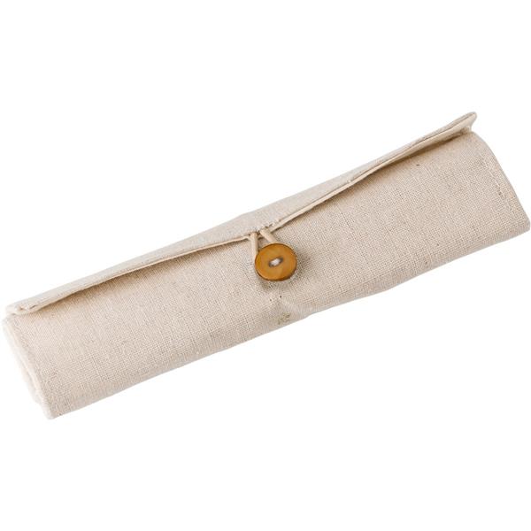 Zestaw szkolny w bawełnianym etui, ołówek, długopis, temperówka, gumka do mazania i bambusowa linijka 15 cm
