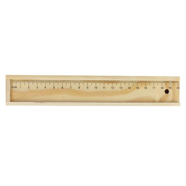 Zestaw szkolny w drewnianym pudełku, 6 kredek, zamknięcie z linijką (20 cm)