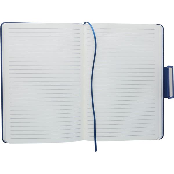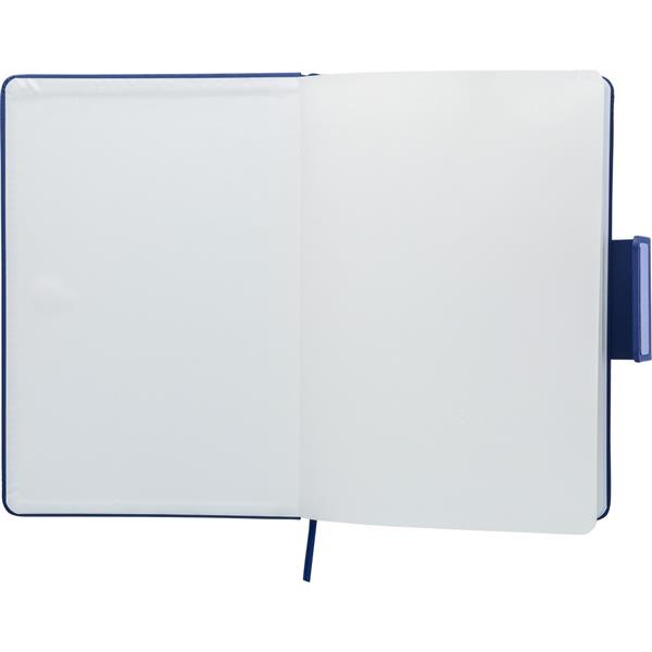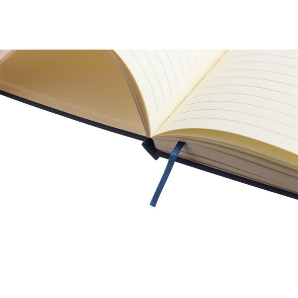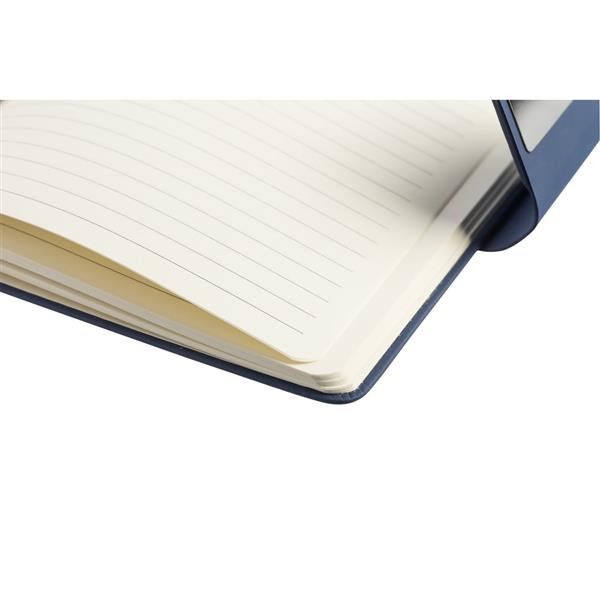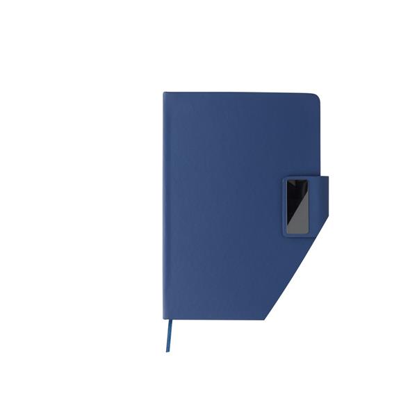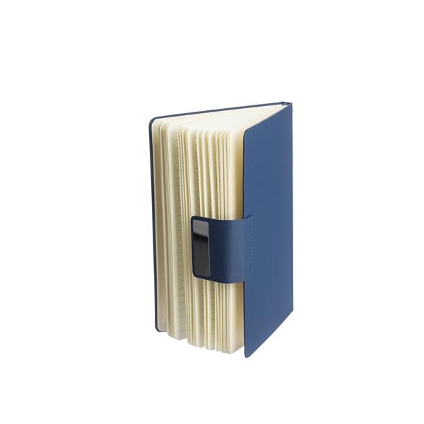 Zestaw upominkowy w ozdobnym pudełku: notatnik, 80 kartek w linie (70 g/m2), magnetyczne zapicie, tasiemka zakładkowa umożliwia wygodne zaznaczanie ostatniej strony lub ważniejszych notatek, długopis w niebieskim kolorze, ikona recyklingu na wszystkich produktach, produkt wykonany z kartonu, PU i poliestru