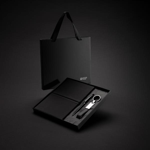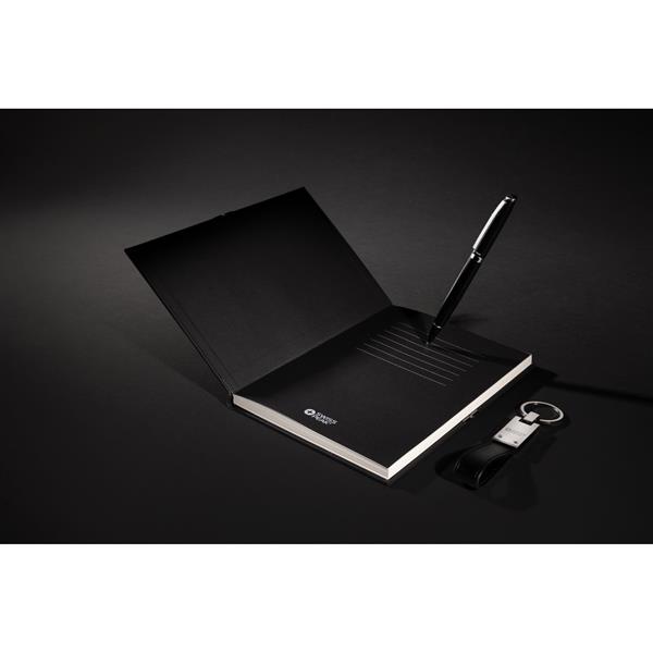 Zestaw upominkowy, długopis i notatnik (160 kremowych stron z papieru z recyklingu), wykonane z materiałów z recyklingu, całkowita zawartość materiałów z recyklingu obliczona na podstawie masy całkowitej produktu: 75%