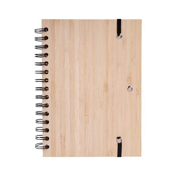 Bambusowy zestaw w upominkowym pudełku. Składa się z notesu w formacie A5 (70 kartek w linie, 80g/m2 ), długopisu z czarnym wkładem, breloka oraz organizera na kable z funkcją podstawki pod telefon.