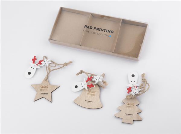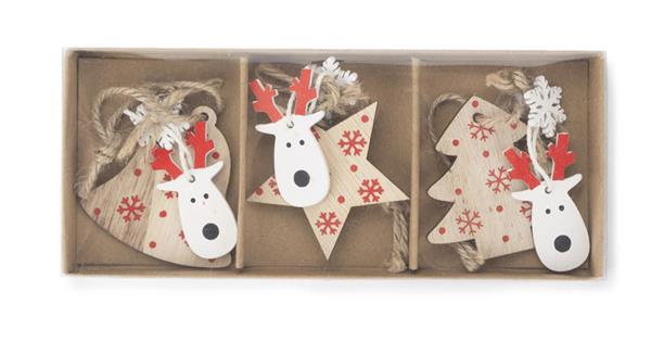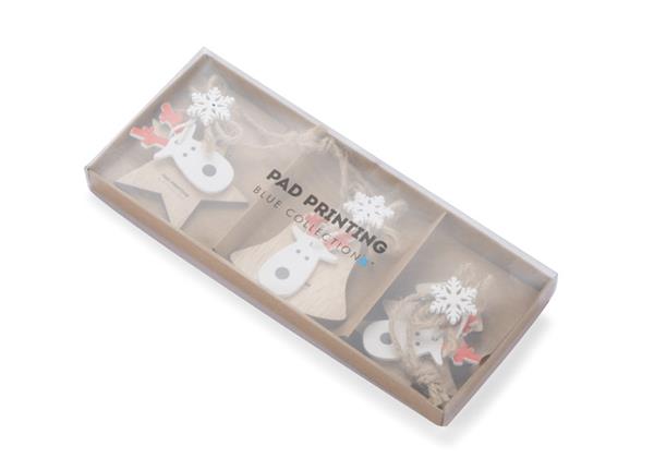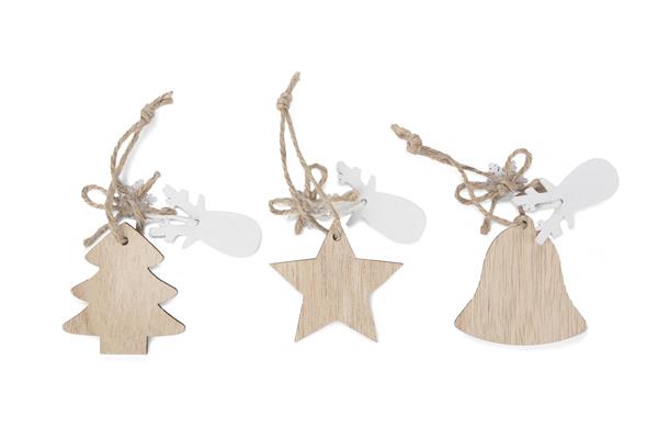 Zestaw FERI składa się z 3 sztuk drewnianych zawieszek o różnych wzorach: gwiazdka, choinka, dzwoneczek. Drewniane zawieszki idealnie wpisują się w trend ekologiczny pasując niemal do każdego wnętrza.