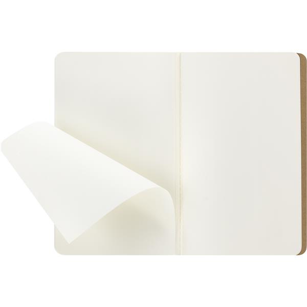 Duży zeszyt MOLESKINE Cahier Journal (ok. A5, large), 80 gładkich stron, miękka okładka z widocznymi przeszyciami na grzbiecie, kieszeń wewnętrzna, 16 kartek z perforacją umożliwiającą wyrwanie na końcu