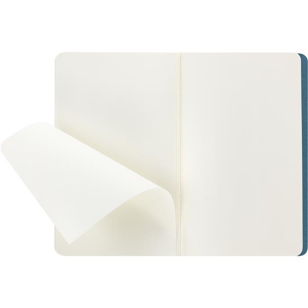 Duży zeszyt MOLESKINE Cahier Journal (ok. A5, large), 80 gładkich stron, miękka okładka z widocznymi przeszyciami na grzbiecie, kieszeń wewnętrzna, 16 kartek z perforacją umożliwiającą wyrwanie na końcu