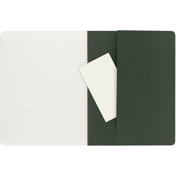 Zeszyt XL MOLESKINE Cahier Journal (ok. B5, XL), 120 stron w linie, miękka okładka z widocznymi przeszyciami na grzbiecie, kieszeń wewnętrzna, ostatnie 16 kartek z perforacją umożliwiającą wyrwanie