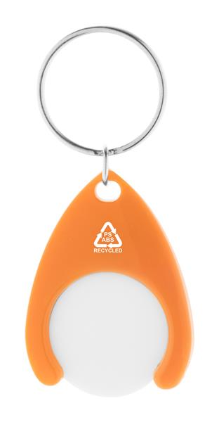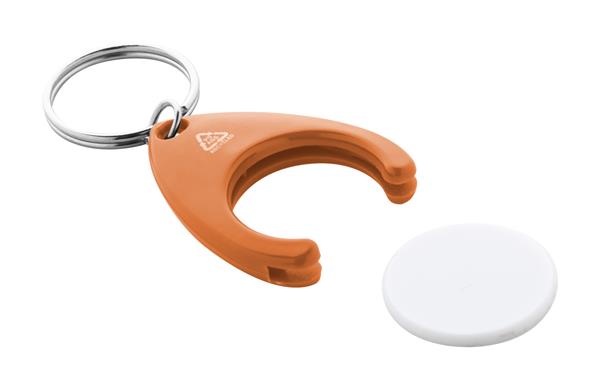 Brelok z tworzywa ABS pochodzącego z recyklingu, z żetonem do wózka na zakupy i metalowym kółkiem. Rozmiar monety: o24×2 mm.