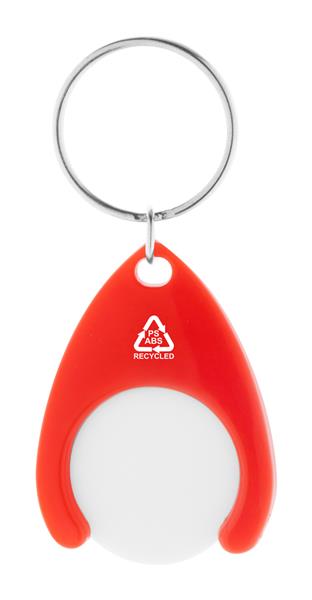 Brelok z tworzywa ABS pochodzącego z recyklingu, z żetonem do wózka na zakupy i metalowym kółkiem. Rozmiar monety: o24×2 mm.