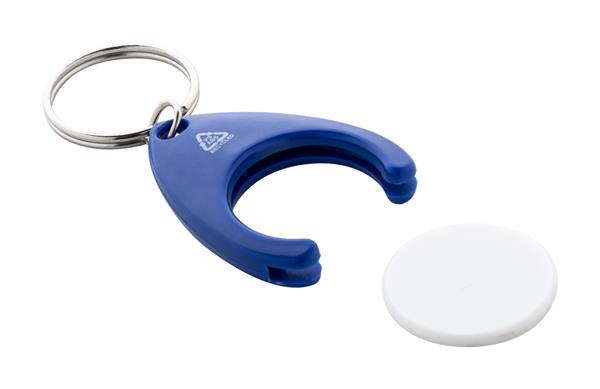 Brelok z tworzywa ABS pochodzącego z recyklingu, z żetonem do wózka na zakupy i metalowym kółkiem. Rozmiar monety: o24×2 mm.