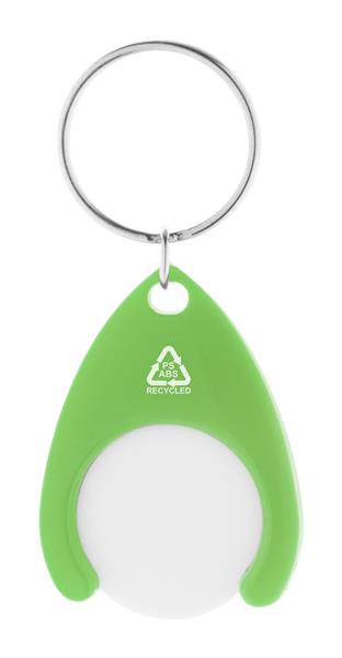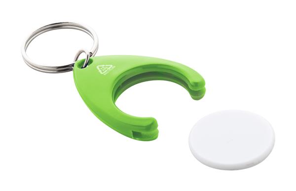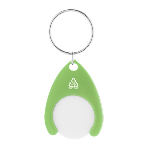 Brelok z tworzywa ABS pochodzącego z recyklingu, z żetonem do wózka na zakupy i metalowym kółkiem. Rozmiar monety: o24×2 mm.
