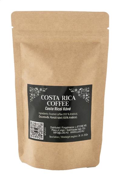 Prażone ziarna kawy z Kostaryki, zapakowane w naturalną torebkę z papieru kraft. 40 gramów.